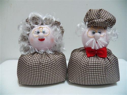 Esse charmoso casal de vovôs é uma ótima sugestão para as salas e quartos, além de ser um elegante presente.
