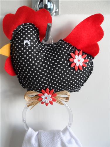 Porta Pano de prato de galinha feito em tecido poá preto de bolinha branca, uma ótima decoração para sua cozinha Acompanha pano combinando.