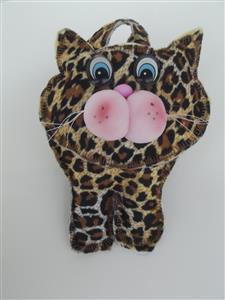 Prendedor de cortina em formato de onça, 20cm de altura. Serve como enfeite de maçaneta.